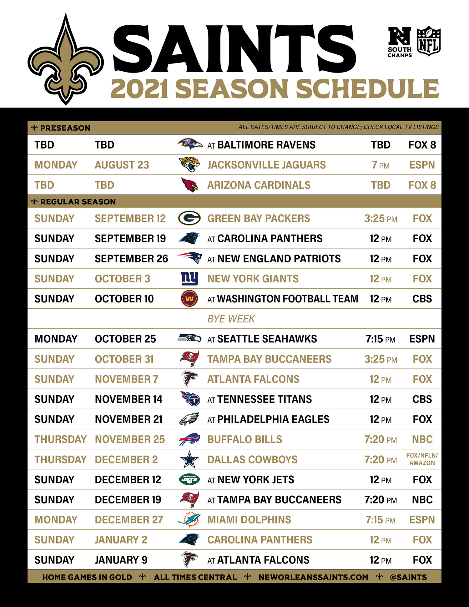 New Orleans Saints On Twitter Our 2021 Schedule Saints Seatgeek Https T Co 5nvsinkxom Twitter